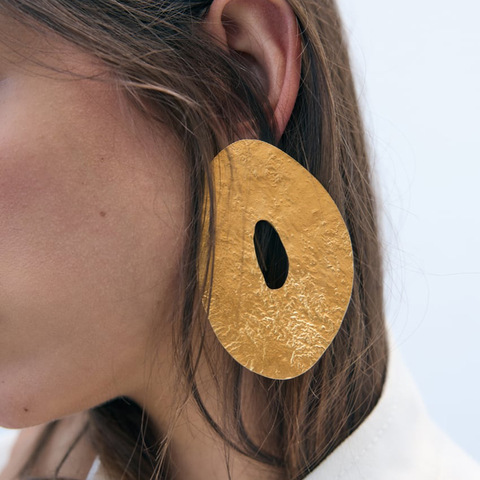 新しいファッションジュエリーレトロ誇張された大きなサークルイヤリングクリエイティブ合金不規則な幾何学的な金属スタッドピアス (KER791)