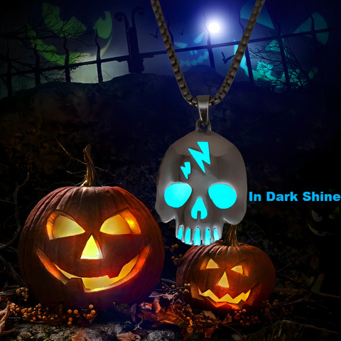 ハロウィン幽霊祭りベアリング歯稲妻頭蓋骨ペンダントネックレス発光ペンダント個性流行のクールネックレス